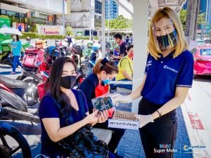 3.ออโต้คอร์ป ขอเป็นส่วนหนึ่งในการดูแลสังคม ด้วยการมอบหน้ากากผ้า โมบิล ซูเปอร์ โมโต ให้กับกลุ่มผู้ใช้รถมอเตอร์ไซค์ทั่วไป และ พนักงานจัดส่งสินค้า พนักงานดิลิเวอร์รี่ เปรียบเสมือนฮีโร่บนท้องถนน ที่ให้บริการในช่วงการระบาดของเชื้อไวรัสโควิด-19 ไม่ว่าจะเป็น การขนส่งพัสดุ, จัดส่งเอกสาร, จัดส่งอาหาร และประชาชนทั่วไป