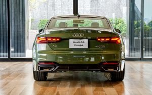 The New Audi A5 Coupé 45 TFSI quattro S line Black Edition ถูกออกแบบตามแนวทางการออกแบบใหม่ (New Design Language) ที่โดดเด่นมีเอกลักษณ์เฉพาะตัว มุมมองของตัวรถตั้งแต่ด้านหน้าถึงด้านท้ายเฉียบคมลงตัว สปอร์ตเรียบหรู สะดุดตาเป็นอย่างมาก และยังมีทางเลือกใหม่ที่ไม่เหมือนใครใน segment รถหรูกับเทรนด์แฟชั่นสีภายนอกใหม่ District Green หรือสีเขียวทหารพราน ตัดกับคาลิปเปอร์เบรกสีแดงหน้า-หลัง สมรรถนะที่มาพร้อมลุคสปอร์ต ดุดัน พร้อมขุมพลังเครื่องยนต์ Mild Hybrid แบบ 4 สูบ พร้อมเทอร์โบชาร์จ ทำงานควบคู่กับระบบขับเคลื่อน 4 ล้อ quattro with ultra technology ปรับกระจายแรงบิดไปยังล้อทั้งสี่ได้อย่างอิสระภายในเสี้ยววินาที โดยเครื่องยนต์รุ่น 45 TFSI ให้กำลังสูงสุด 249 แรงม้า และแรงบิดสูงสุด 370 นิวตัน อัตราเร่ง 0-100 กม./ชม. ในเวลาเพียง 5.8 วินาที ทำความเร็วสูงสุด 250 กม./ชม. มีสีให้เลือก 6 สี District Green, Glacier White, Mythos Black, Quantum Grey, Tango Red และ Navarra Blue ส่วนเครื่องยนต์ Mild Hybrid รุ่น 40 TFSI ให้กำลังสูงสุด190 แรงม้า และแรงบิดสูงสุด 320 นิวตัน ขับเคลื่อนล้อหน้า อัตราเร่ง 0-100 กม./ชม. ในเวลา 7.3 วินาที ทำความเร็วสูงสุด 240 กม./ชม. มีให้เลือก 4 สี คือ Glacier White, Mythos Black, Quantum Grey และ Navarra Blue