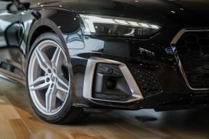 ชุดแต่งภายนอกของ A5 Coupé 45 TFSI quattro S line มาพร้อมความสปอร์ตดุดันแบบ Black Edition ไฟหน้าดีไซน์ใหม่ที่มีความเฉียบคมทำให้ดูมีความทันสมัยยิ่งขึ้น และได้รับการอัพเกรดชุดไฟเป็นแบบ Matrix LED ปรับการส่องสว่างแบบอัจฉริยะ โดยจะไม่รบกวนสายตารถที่วิ่งสวนมา พร้อมไฟเลี้ยวแบบ Dynamic อันเป็นเอกลักษณ์ของ Audi การออกแบบประตูหลังและไฟท้ายที่เรียวยาว ดูสะดุดตา มาพร้อมช่วงล่างแบบ Sports พร้อมคาลิปเปอร์เบรกสีแดงหน้า-หลัง