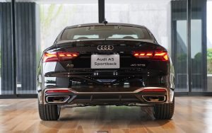 The New Audi A5 Sportback ตอบโจทย์ไลฟ์สไตล์ทั้งแบบเดินทางคนเดียวหรือเดินทางทั้งครอบครัว รูปลักษณ์ภายนอก กระจกประตูแบบ frameless ให้ลุคสปอร์ตปราดเปรียวตั้งแต่เส้นแนวหลังคาที่ลาดเอียงจนถึงท้ายรถ ขณะที่พื้นที่การใช้งานเข้าออกสะดวกสบาย ภายนอกได้รับการออกแบบให้ดูแข็งแกร่งด้วยเส้นสายตัวถังที่ทรงพลัง ผสมผสานอย่างลงตัวในการออกแบบของรถยนต์แบบ Coupé แต่มีความกว้างขวาง เข้า-ออกสะดวกด้วยประตูด้านข้างบานหลังซ้าย-ขวาในลักษณะรถ Sedan ดีไซน์ใหม่สวยงาม ลงตัว ไฟหน้าดีไซน์ใหม่ได้รับการอัพเกรดเป็น Matrix LED ปรับการส่องสว่างอัจฉริยะเพื่อไม่ให้รบกวนสายตารถที่วิ่งสวนมา พร้อมไฟเลี้ยว Dynamic อันเป็นเอกลักษณ์ของ Audi