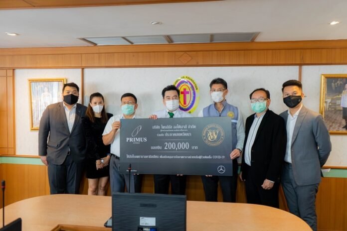 เมื่อเร็วๆ นี้ นายณัฏฐวุฒิ ตั้งคารวคุณ (คนที่ 2 จากขวา) ประธาน บริษัท ทีโอเอ เวนเจอร์ โฮลดิ้ง จำกัด (TOA VENTURE HOLDING : TOAVH) พร้อมผู้บริหารระดับสูง และพนักงานบริษัทในเครือ TOAVH ร่วมกับ นายสุรัตน์ สุวชิตวงศ์ (คนที่ 1 จากขวา) ประธาน ประชาคมเขตวัฒนา และคณะทำงาน มอบเงินบริจาค จำนวน 200,000 บาท เพื่อสนับสนุนการรักษาพยาบาลช่วยเหลือผู้ป่วยติดเชื้อ COVID-19 และกิจการทางการแพทย์ ให้แก่โรงพยาบาลคามิลเลียน โดยมี บาทหลวงเชิดชัย เลิศจิตรเลขา (คนที่ 1 จากซ้าย)ผู้อำนวยการโรงพยาบาล และนายแพทย์อานนท์ วงศ์กิตติรักษ์ (คนที่ 2 จากซ้าย) ผู้อำนวยการแพทย์ ให้เกียรติเป็นตัวแทนรับมอบในครั้งนี้